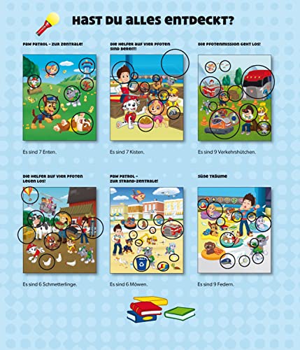 Jede Seite bietet Suchaufgaben, bei denen Chase, Ryder und die anderen Fellfreunde bei ihren Abenteuern begleitet werden. Ein spannendes Quiz am Ende testet das gesammelte PAW Patrol Wissen.