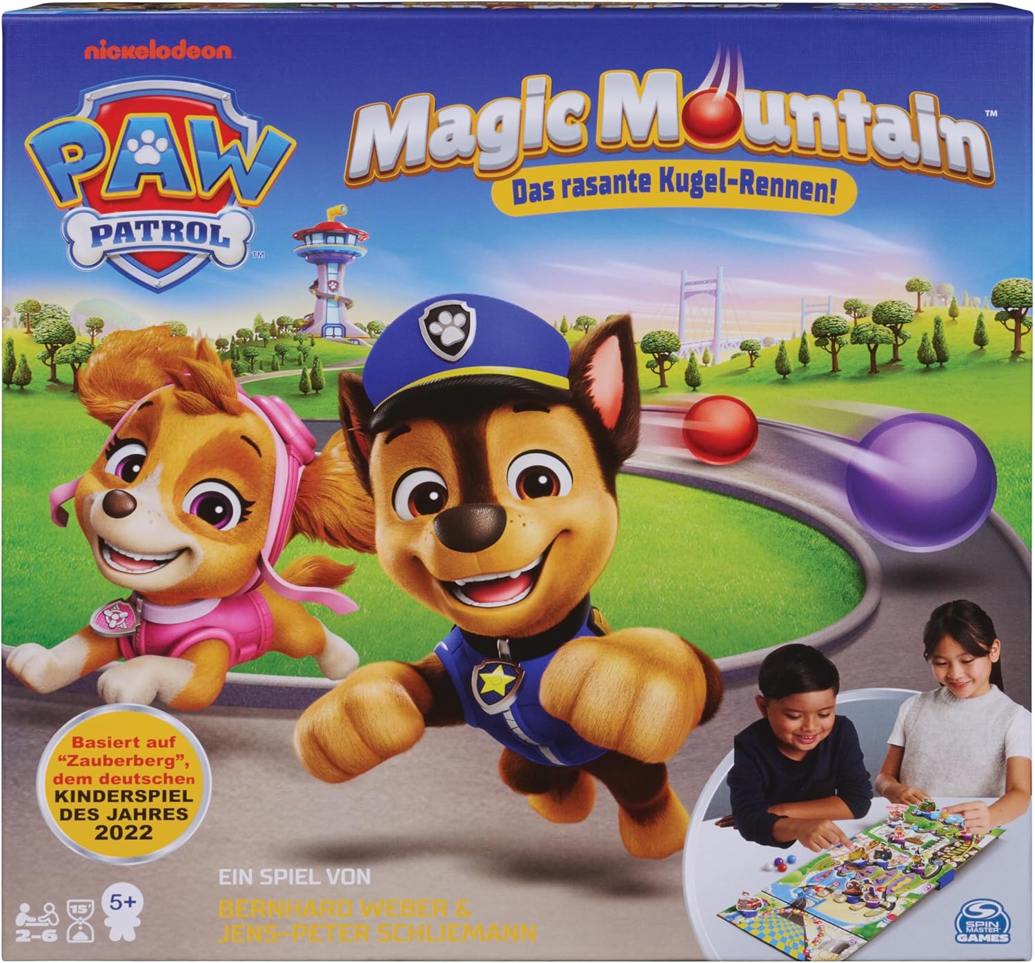 Spin Master Games – PAW Patrol Magic Mountain, Brettspiel mit Kugel-Rennen, basiert auf Zauberberg Spiel des Jahres 2022