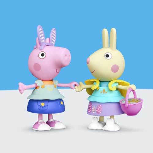 Die 15 cm große Peppa Wutz Figur bringt mit 6 niedlichen Frühlingsaccessoires jede Menge Anziehspaß ins Kinderzimmer. Hasenohren, Hasenschuhe, Kükenumhang und frühlingshafte Kleidungsstücke lassen sich kinderleicht kombinieren.